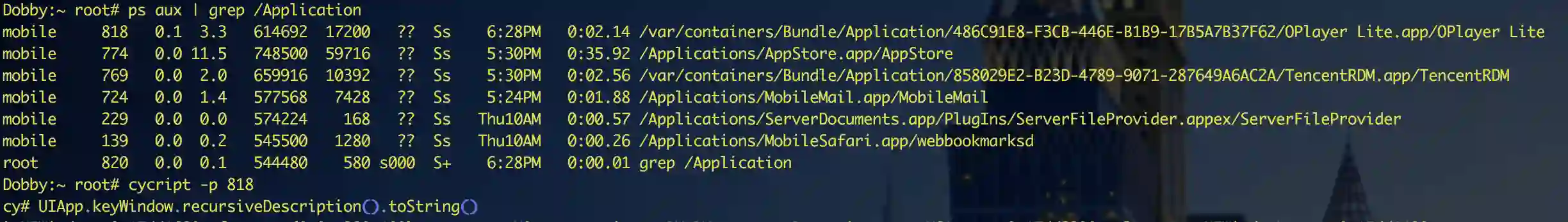 cycript 进入到目标APP进程后: