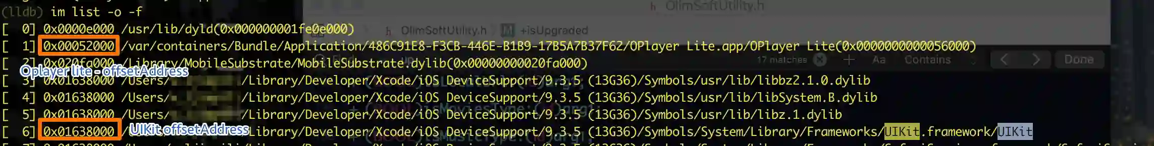 得到了Oplayer lite的偏移地址和UIKit偏移地址