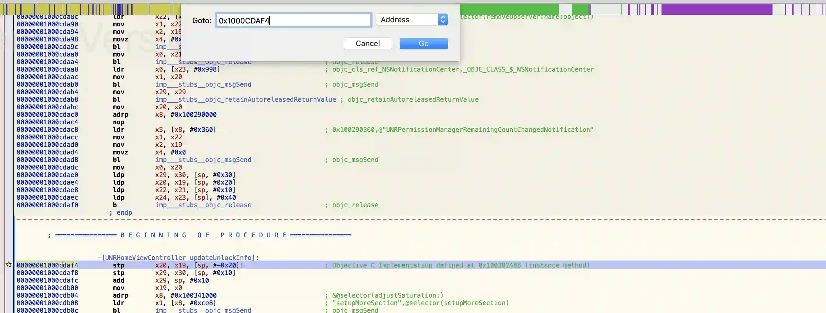 获取它们的静态地址后,在LLDB查看下初始偏移地址, 加上并断点这三位.