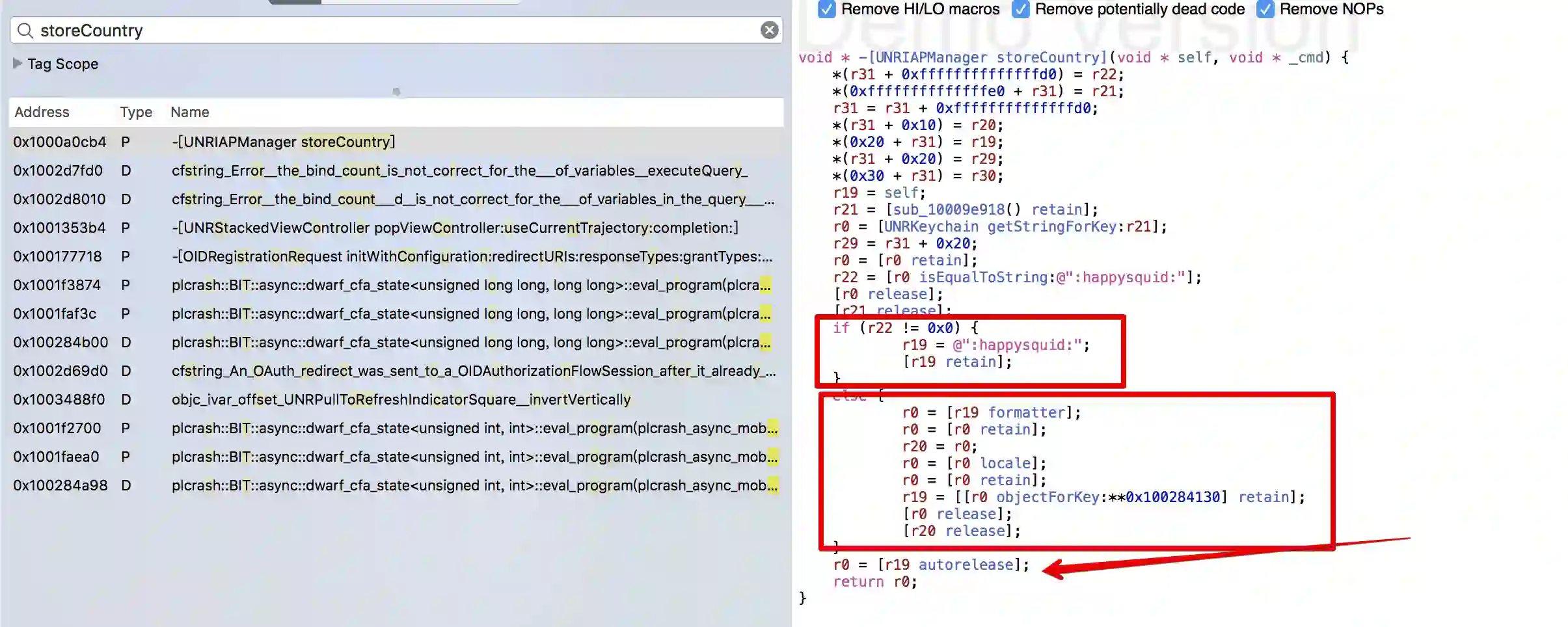 so , 继续看看storeCountry的返回逻辑,依旧常规Hopper搜方法: