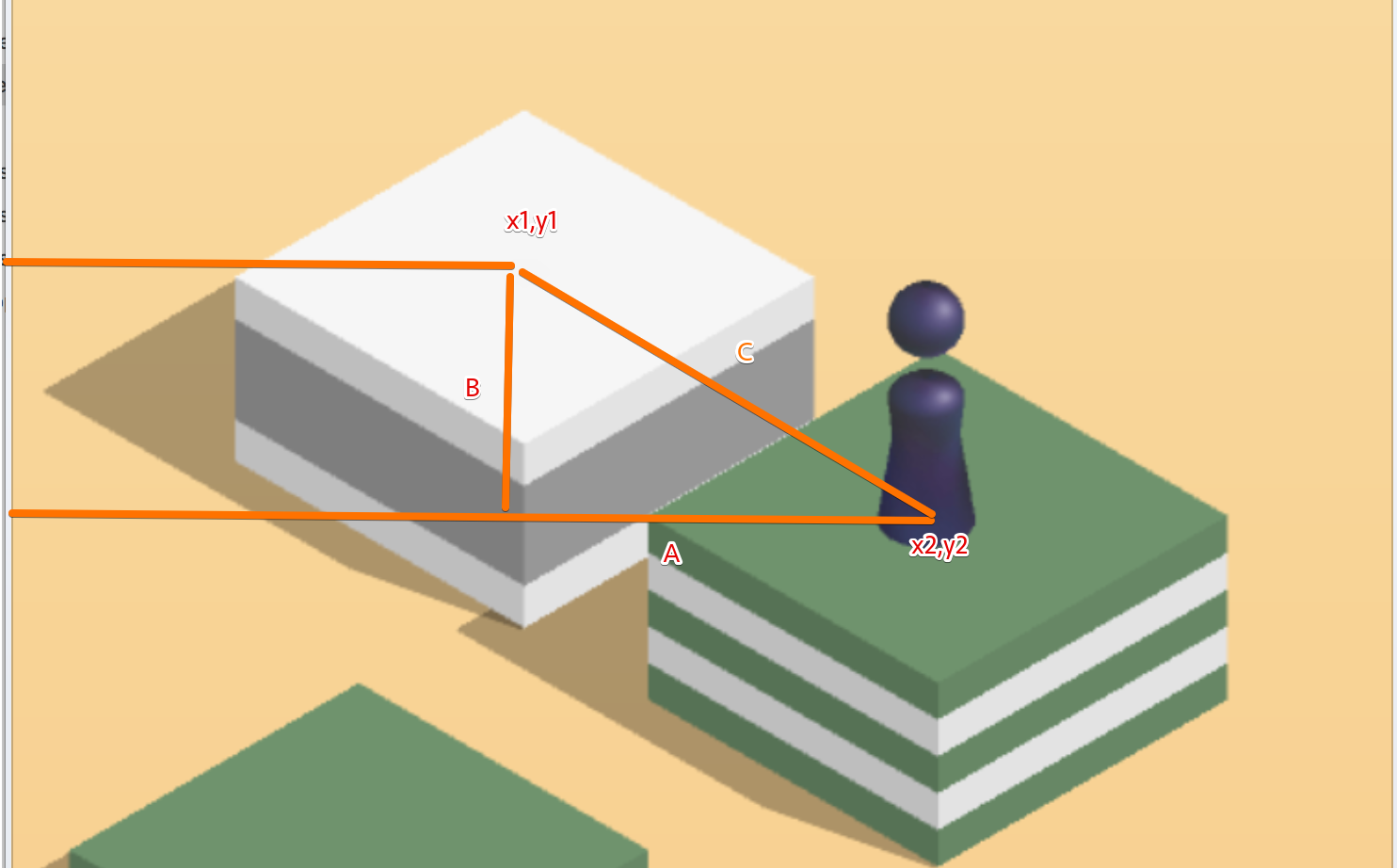 我们通过分析这两个点, 得到小人到对面物体的地点: