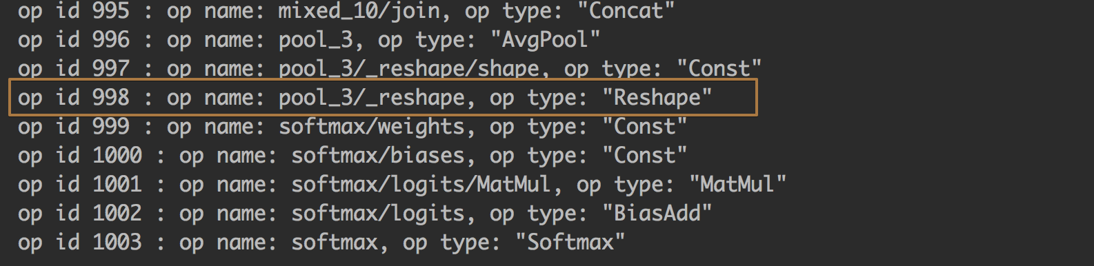 print('op id {} : op name: {}, op type: "{}"'.format(str(i),ops\[i\].name, ops\[i\].type))