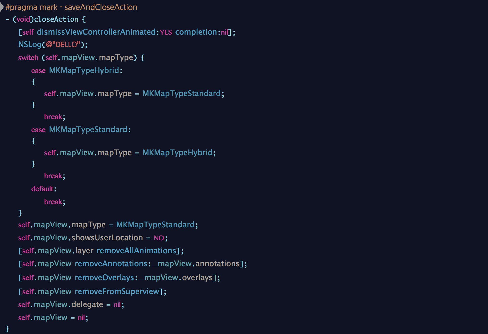 上方是mapview, 这本身就是一个内存问题,地图App都知道, 所以在dismiss的位置,需要很”干净”的把它清理一下.