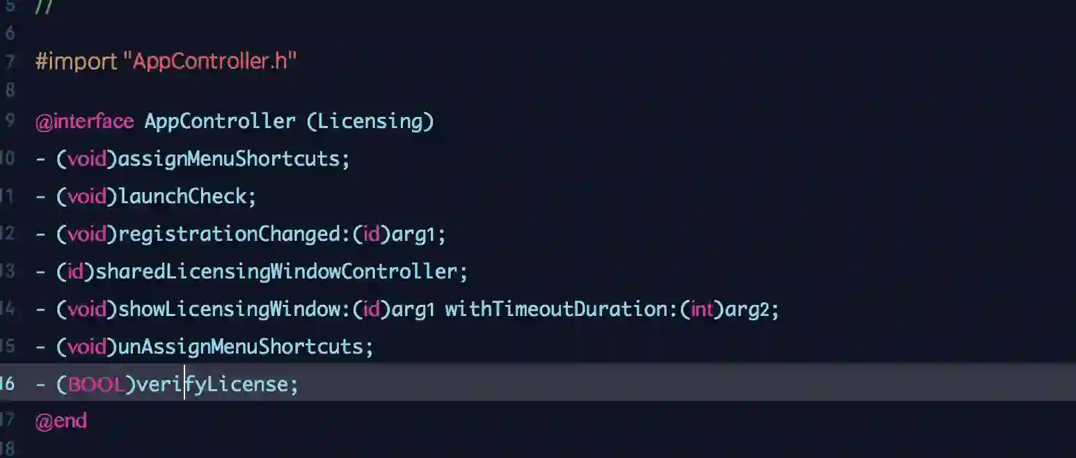 - (BOOL)verifyLicense;这真的不能再明白的一个方法了,不管是不是依然开始Hook一下.mac的逆向就是各种Hook~